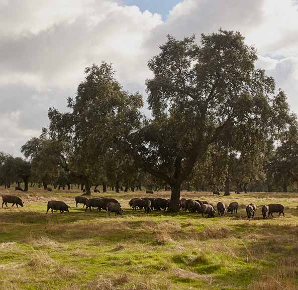 La tierra que vio nacer a nuestra Cooperativa es mucho más que un entorno: es un legado natural de encinas milenarias, de dehesas verdes y arboladas, cuyo fruto lleva alimentando a nuestros cerdos Ibéricos desde siempre, dando origen a unos productos únicos en el mundo.