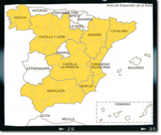 Los animales de esta raza constituyen un censo importante dentro de las explotaciones porcinas españolas. Su distribución ocupa todo el territorio nacional.