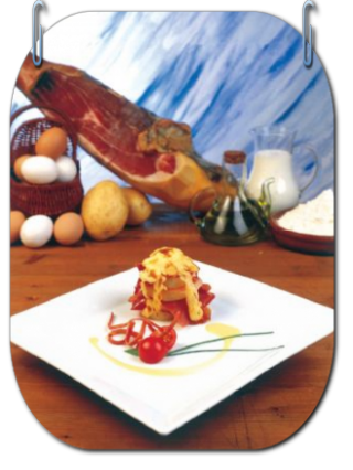 Hierve las patatas con piel hasta que estén tiernas. Deja enfriar para pelarlas. Aparte, emulsiona el huevo con el agua y el aceite de oliva para obtener una mayonesa clarita para gratinar la lasaña. Filetea las patatas y monta la lasaña alternando patata y jamón serrano. Añade la mayonesa y gratina