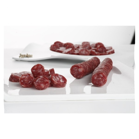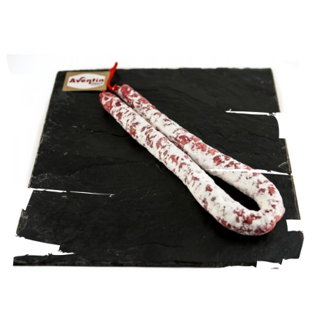 Embutido curado, elaboración fruto de una tradición centenaria de la zona, al cual en este caso se le incorpora otro proceso natural, la creación de moho durante la curación, que le aporta otras caracterisitcas qeu hacen que este producto tenga su sello propio.